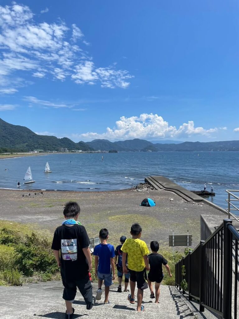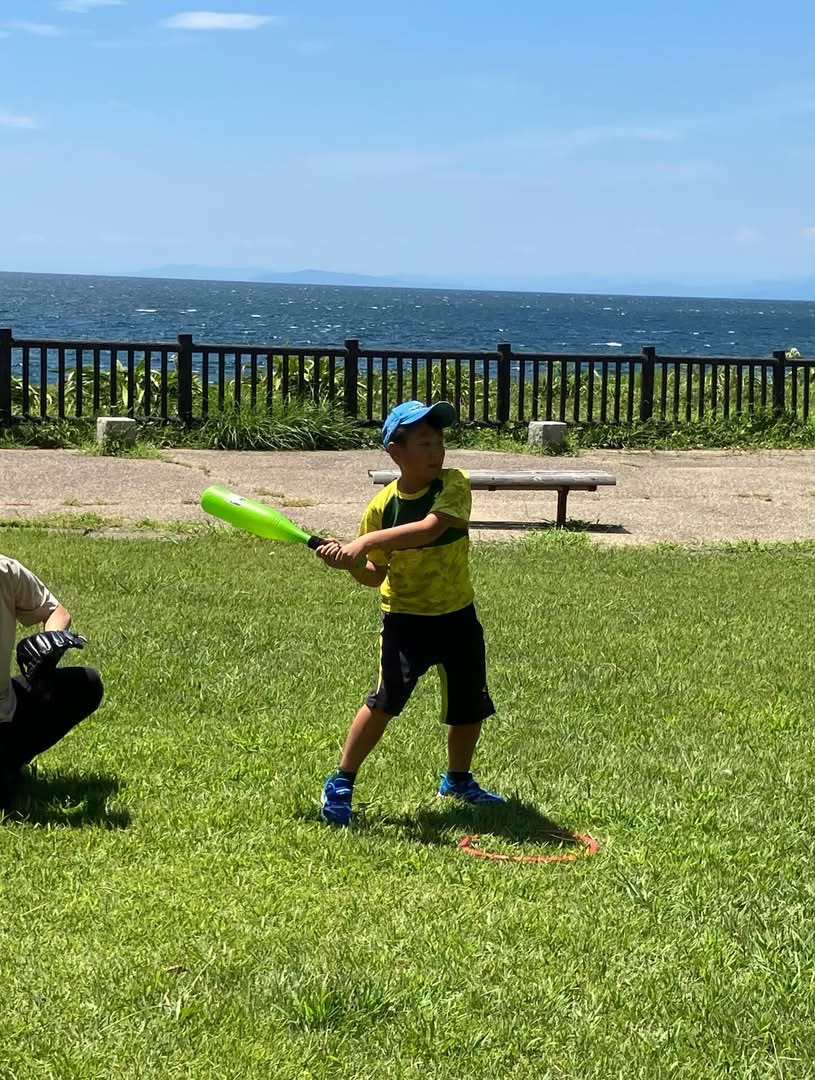海を見に行きました。海辺の芝生で野球をして。潮風が気持ちのいいひと時でした。